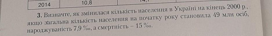 Ответ: смертность превышает рождаемость на 348000. Число жителей на конец 2000 года составила 48652000.