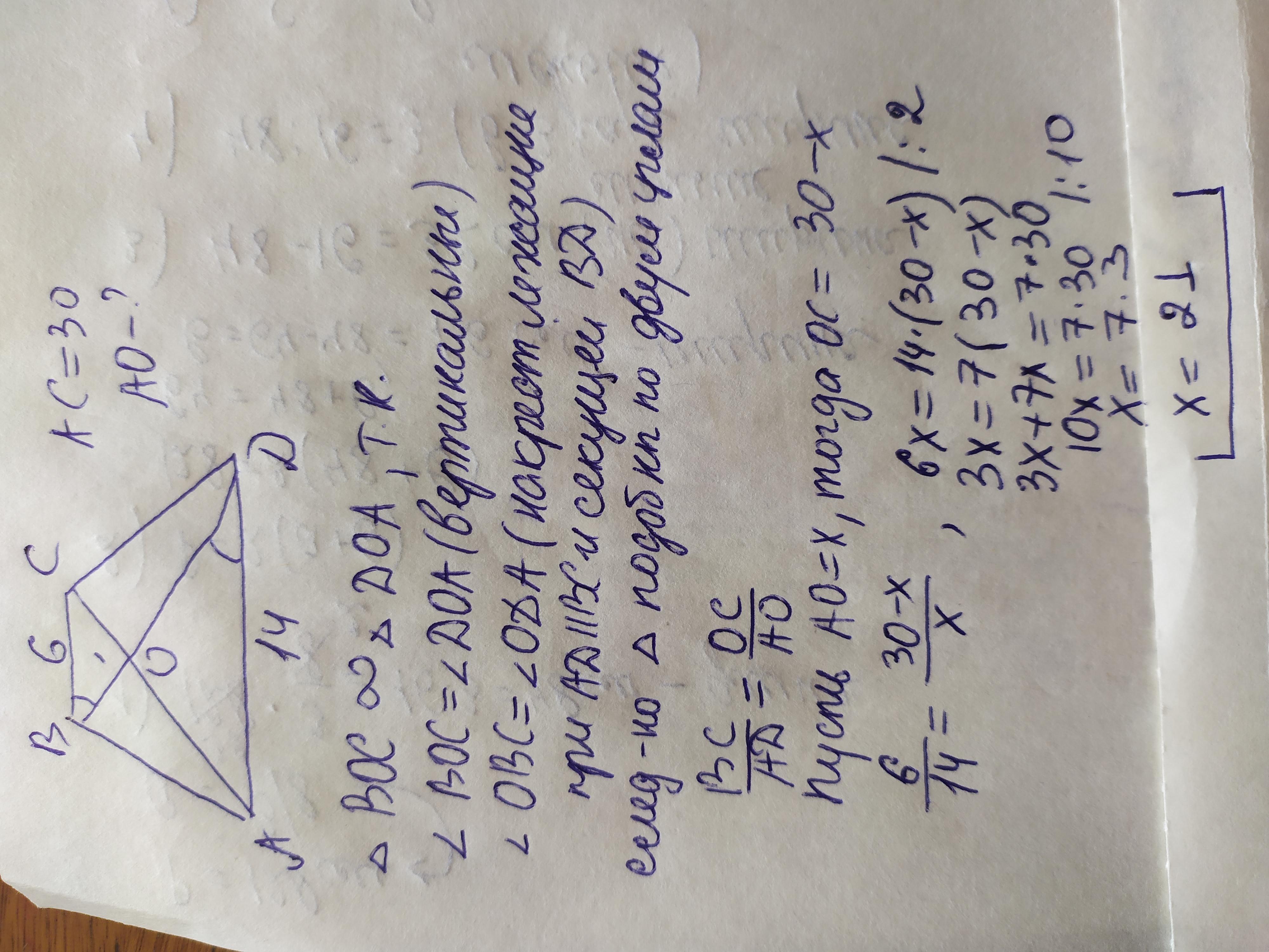 AO=14/20 AC=14/20×30=21