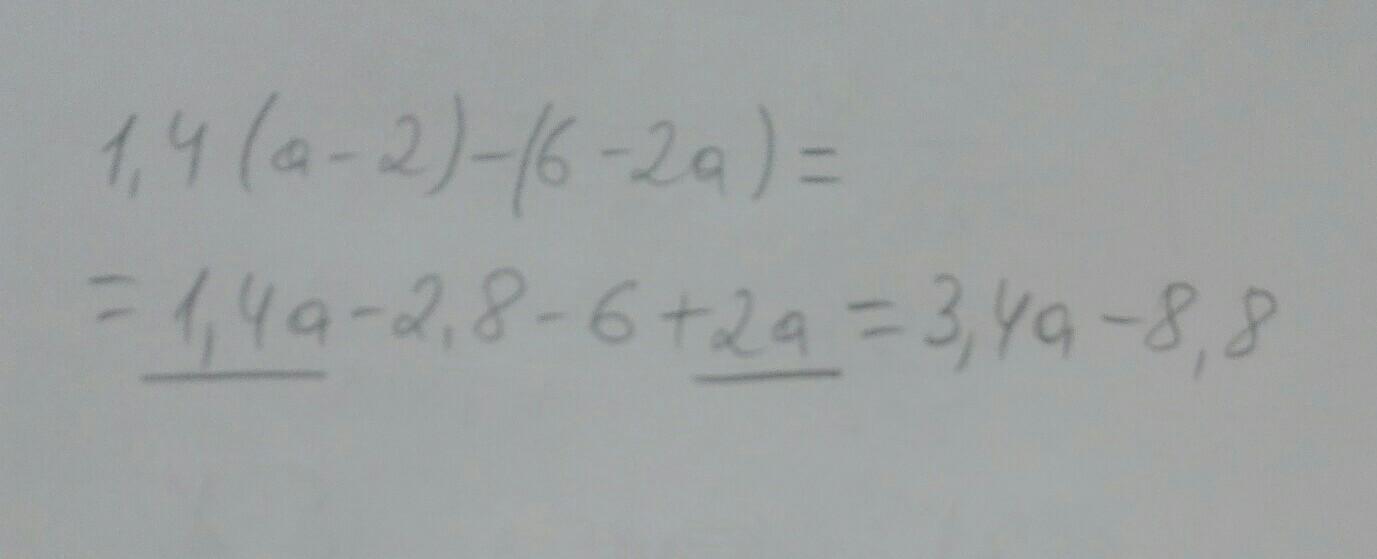 Ну да, раскрываешь скобки и получается 1,4a-2,8-6+2a.