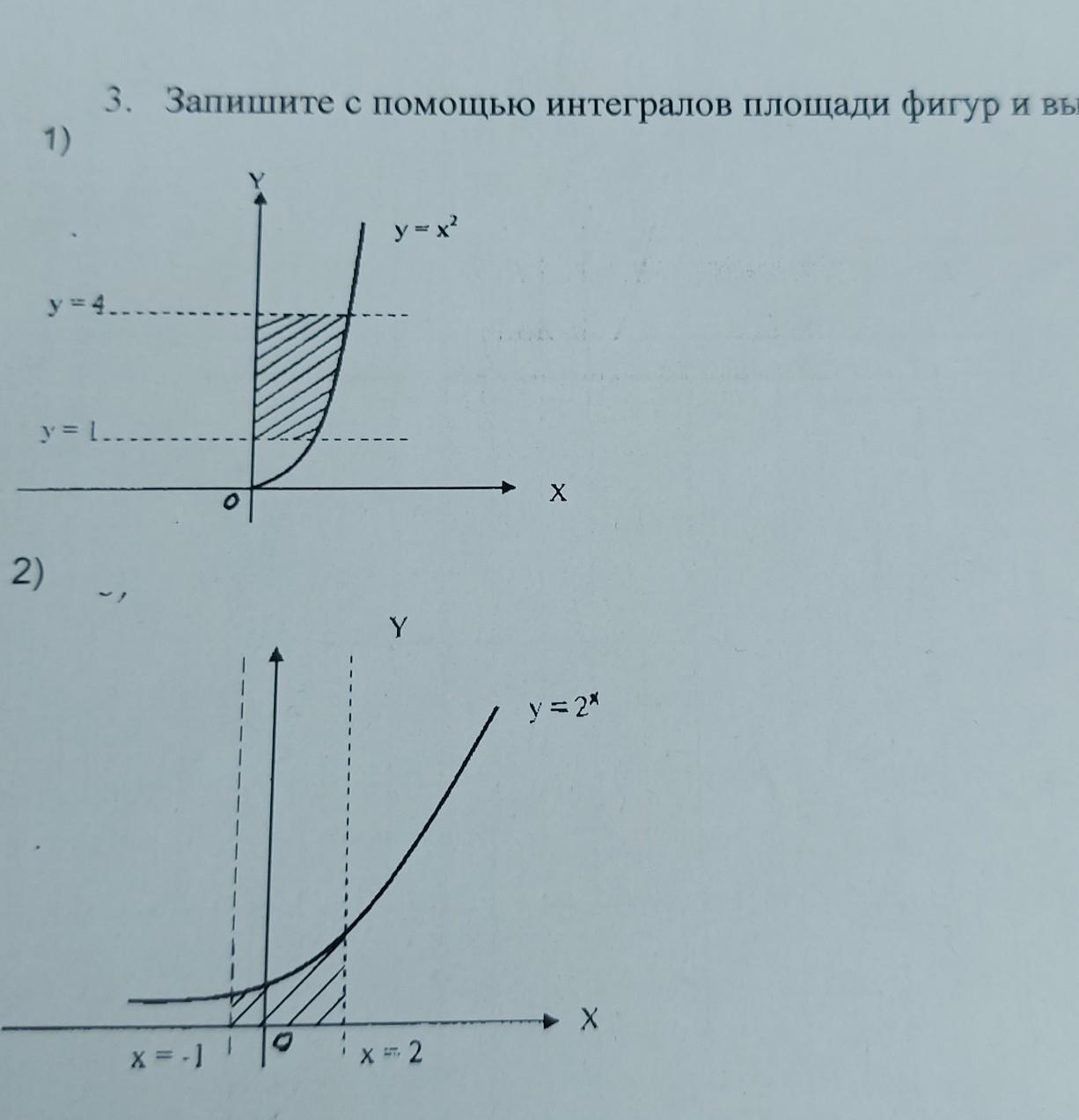 1) Что бы вычислить данную площадь отнимем от всей площади ограниченной y=4 площадь ограниченной y=1