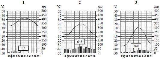 Рассмотрите рисунки с изображением климатограмм, построенных по данным метеонаблюдений в разных частях Земли, и выполните задание.