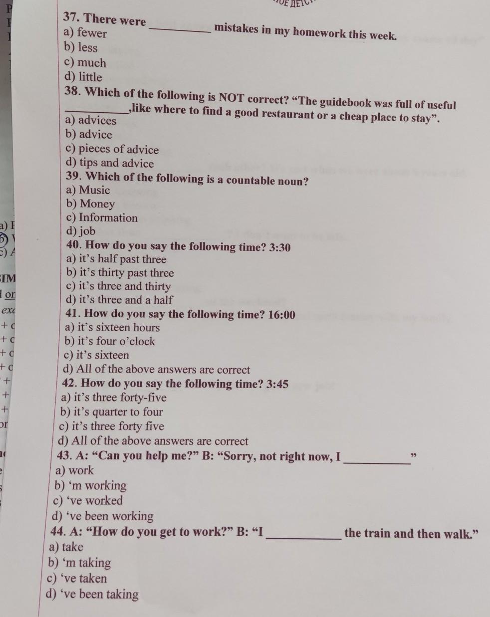 Ответ: 37 a 38 a 39 d 40 a 41 b 42 b 43 b 44 a