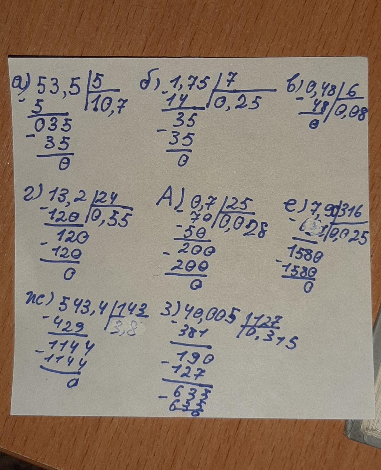 а) 53,5: 5; ж) 543,4 : 143;