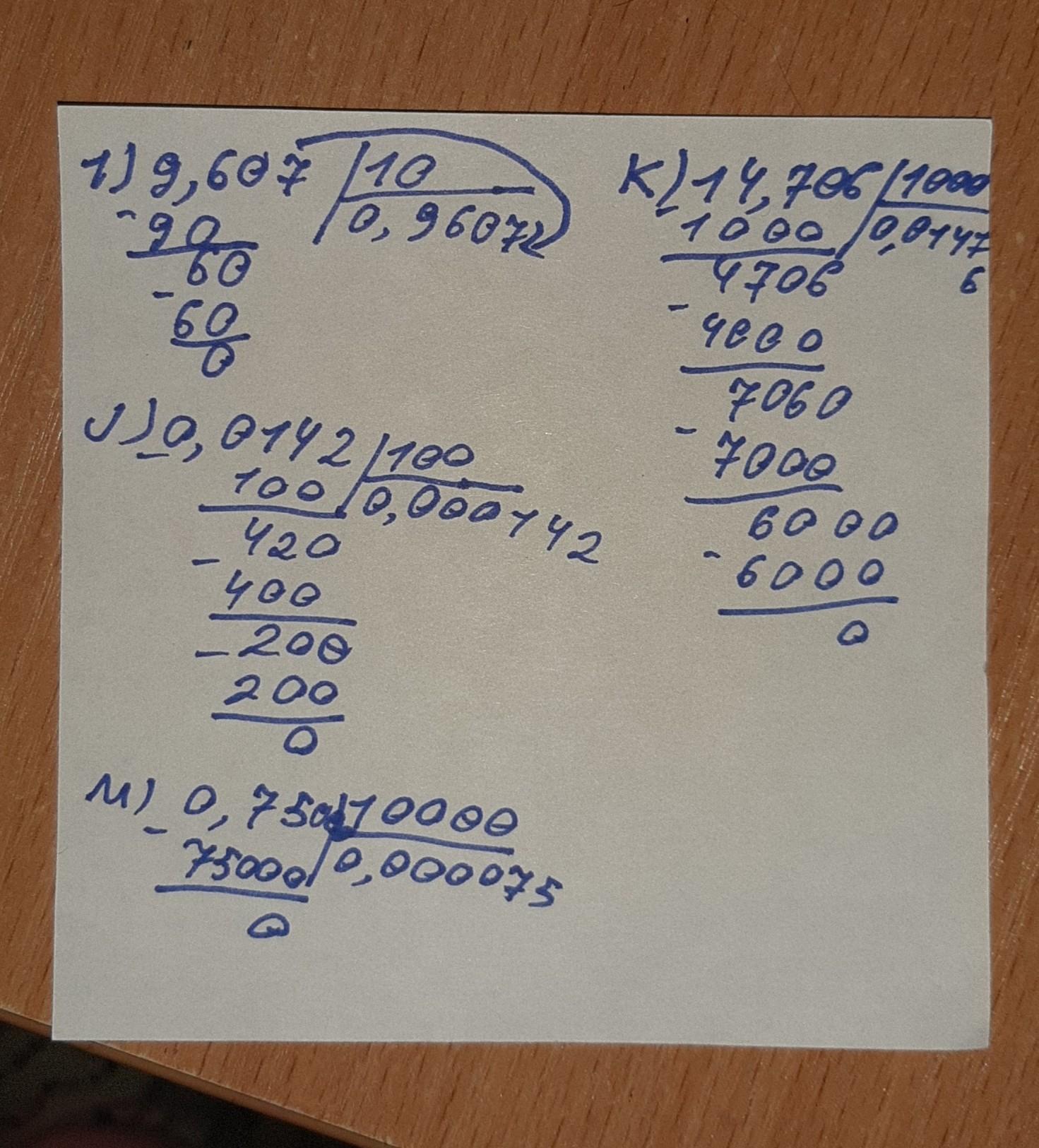 в) 0,48 : 6; 1) 9,607 : 10;