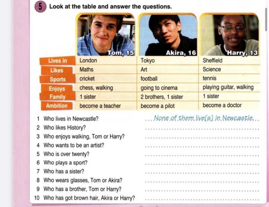 10 None of them has got brown hair.