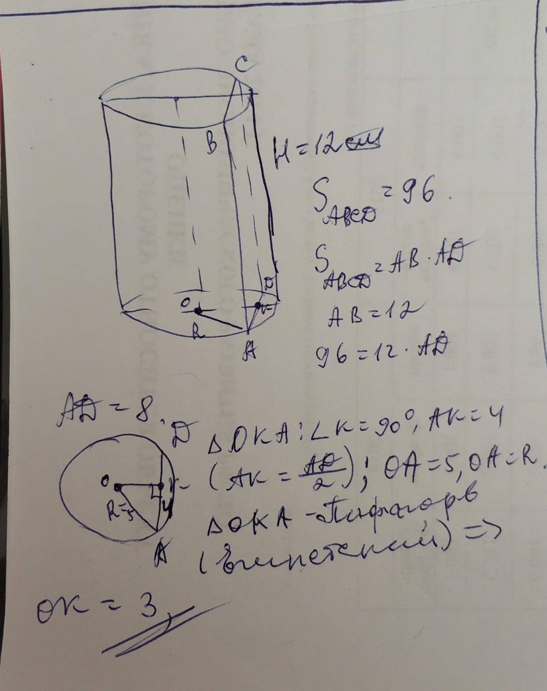 сечение цилиндра надо провести на расстоянии 3 от центра основания