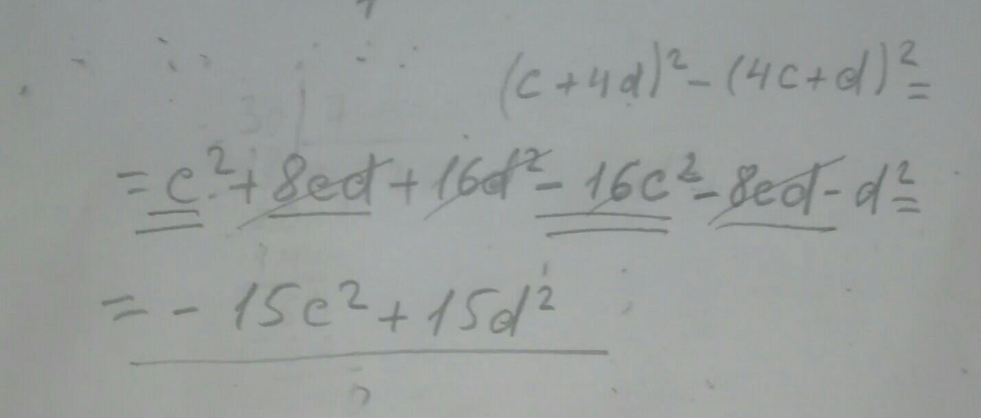 (c + 4d)² - (4c + d)² = (c + 4d - 4c - d)(c + 4d + 4c + d) = (- 3c + 3d)(5c + 5d) =