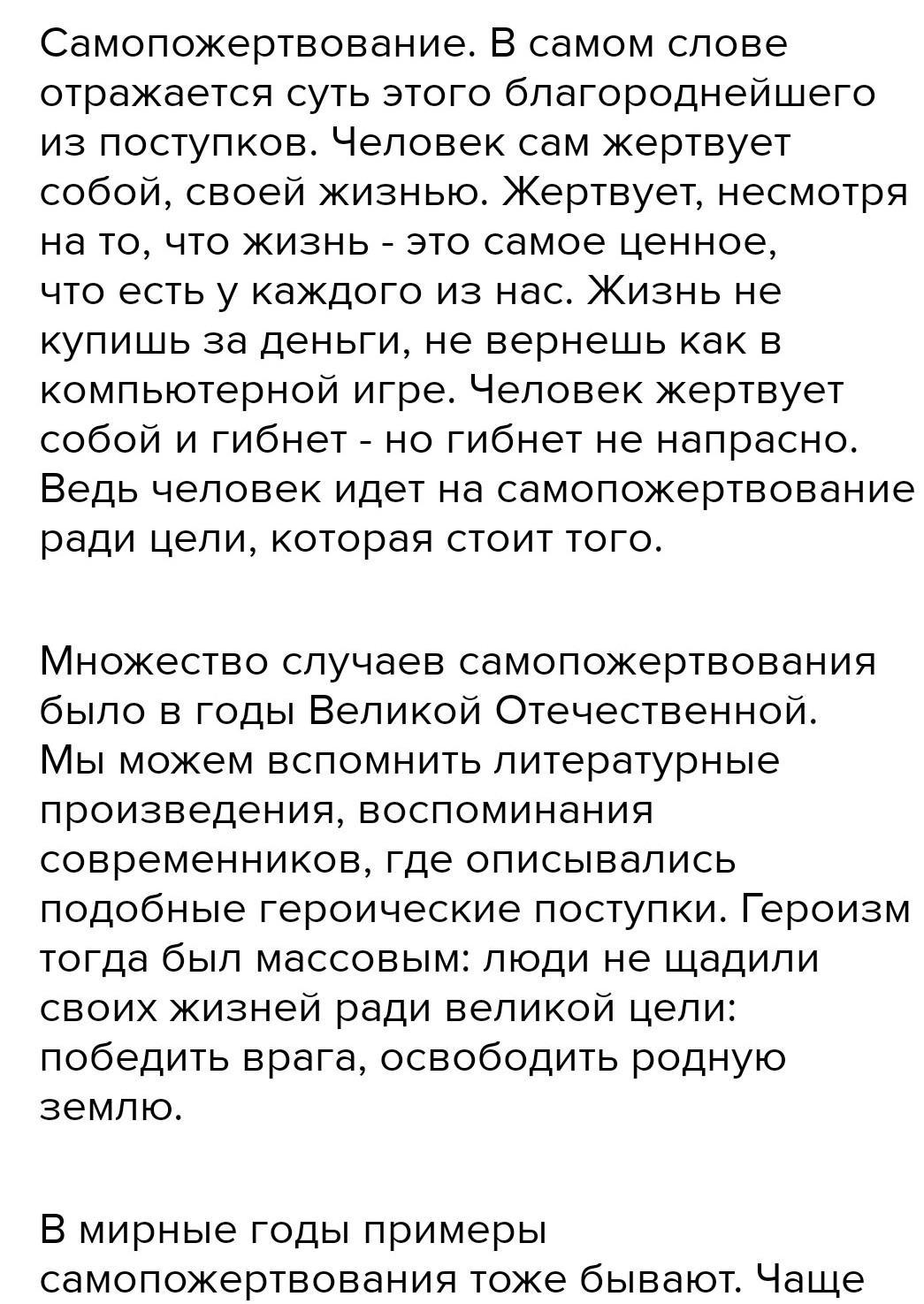 Можно привести примеры случаев исключительных, они более впечатляющие: например, молодой человек отдал свою почку любимой девушке. Но вокруг нас ежеминутно происходят акты самопожертвования, которые настолько привычные, что воспринимаются как должное. Я имею в виду схему родительского поведения. Мы привыкли с самого рождения видеть маму всегда бодрой, на ногах, за работой. Мы знаем, что если даже поздно вечером вспомним о чем-то, нужном утром, то за ночь оно появится. Часто мы уверены, что маме с отцом просто не нужны обновки, подарки, отдых, и как-то не связываем это с появлением желанных нарядов, девайсов, поездок у нас самих. А это и есть самое настоящее будничное ежедневное самопожертвование, за которое каждый из нас в долгу перед родителями.