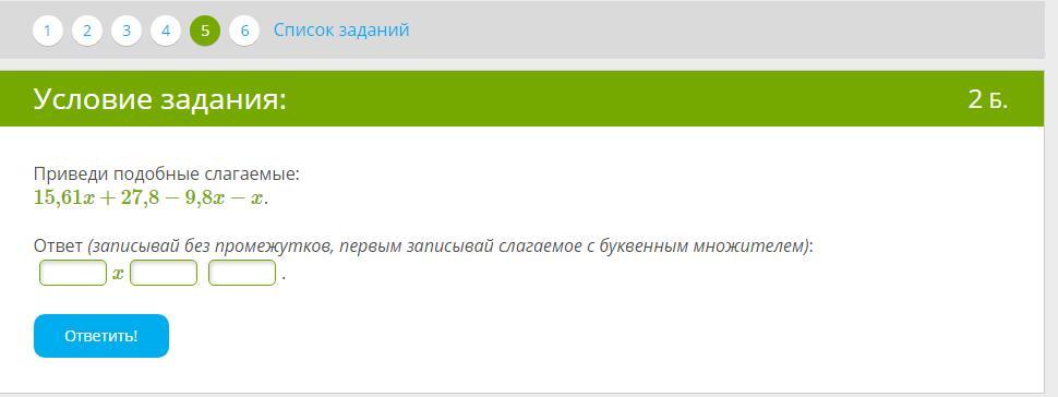 Ответ (записывай без промежутков, первым записывай слагаемое с буквенным множителем):