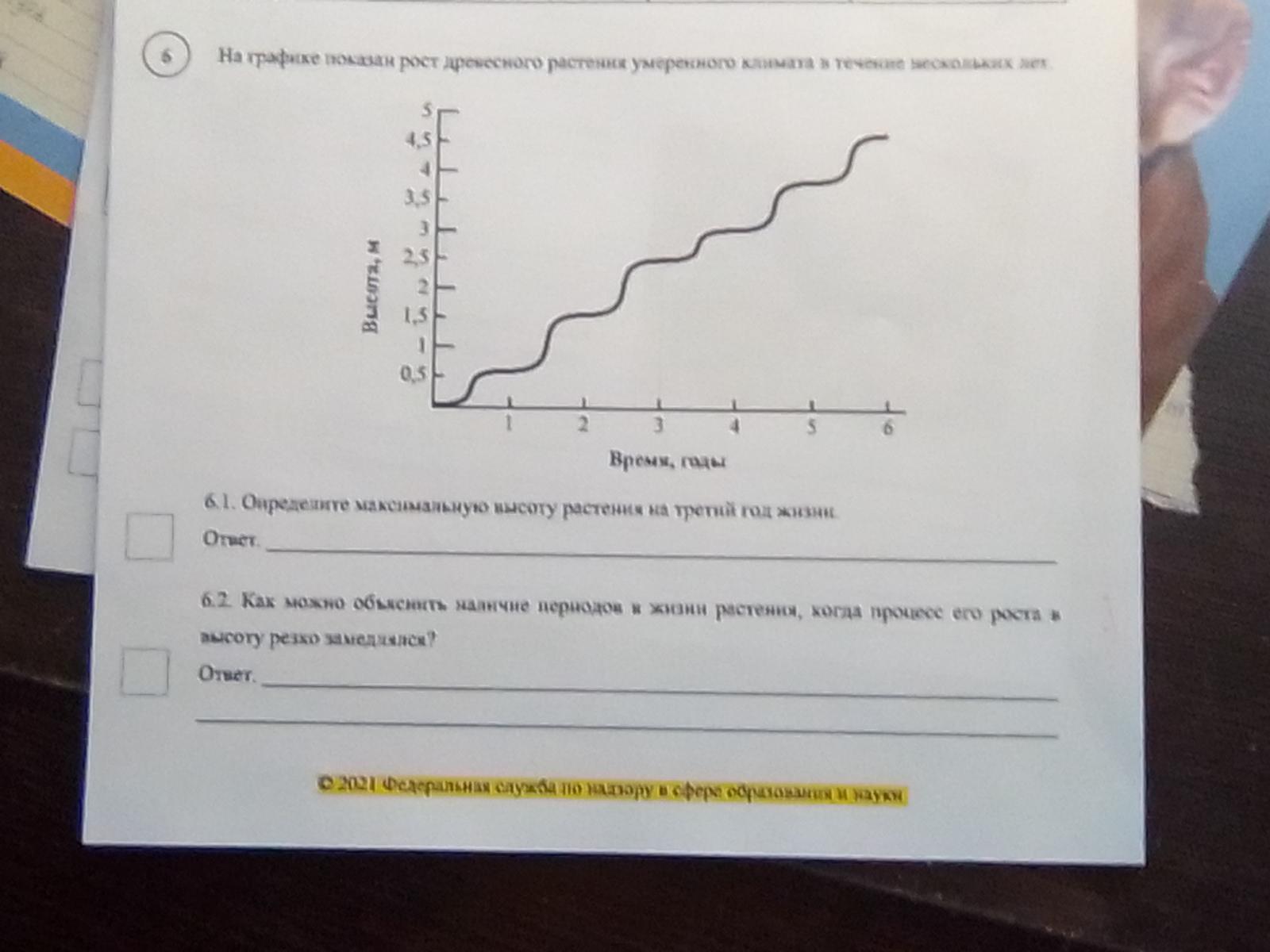 На графике показан рост древесного растения умеренного климата в течение нескольких лет.