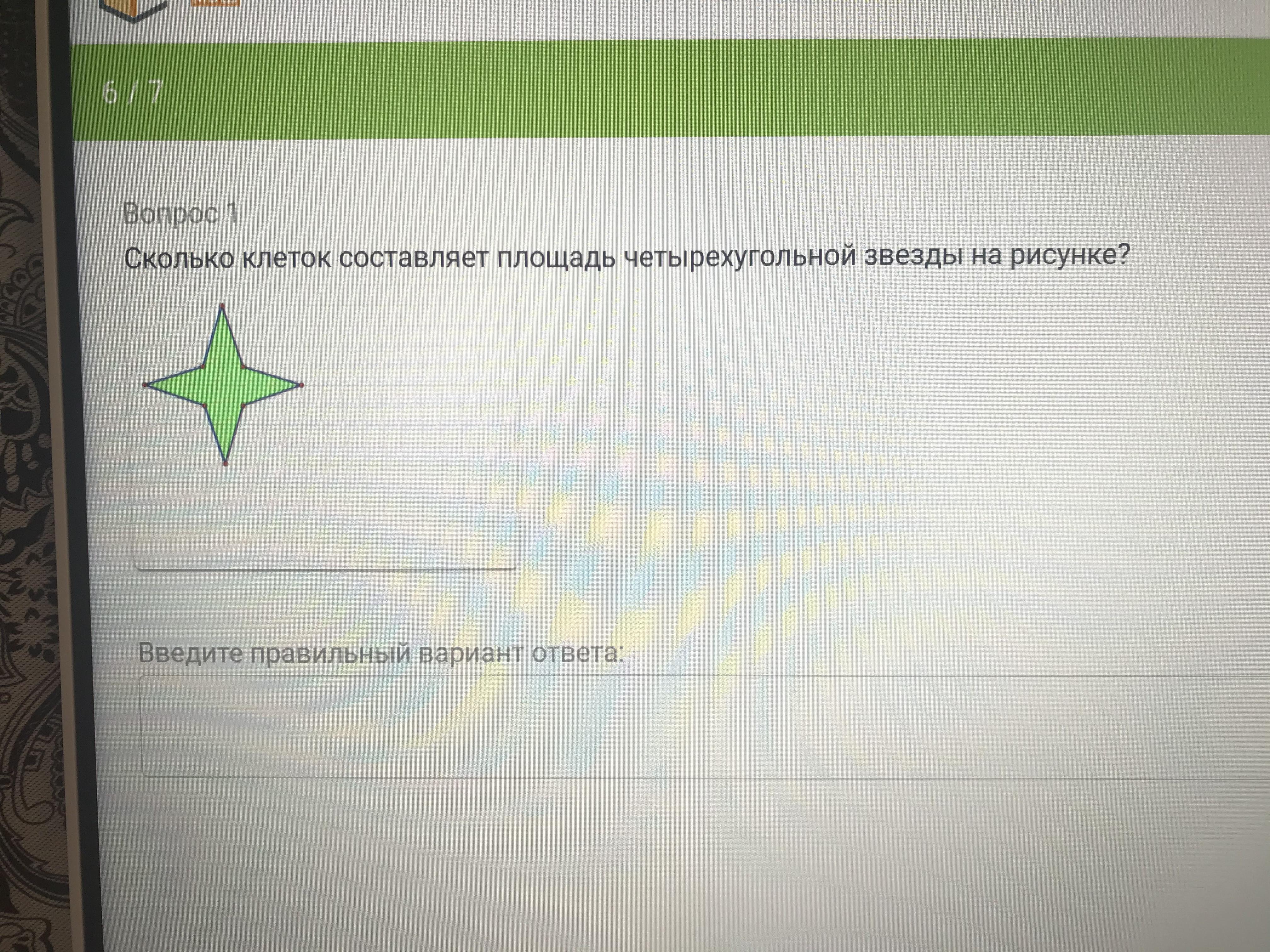 2)Если достроить до квадрата, то зеленаяя звезда будет внутри и ее площадь= 8*8-4*беленькие части.