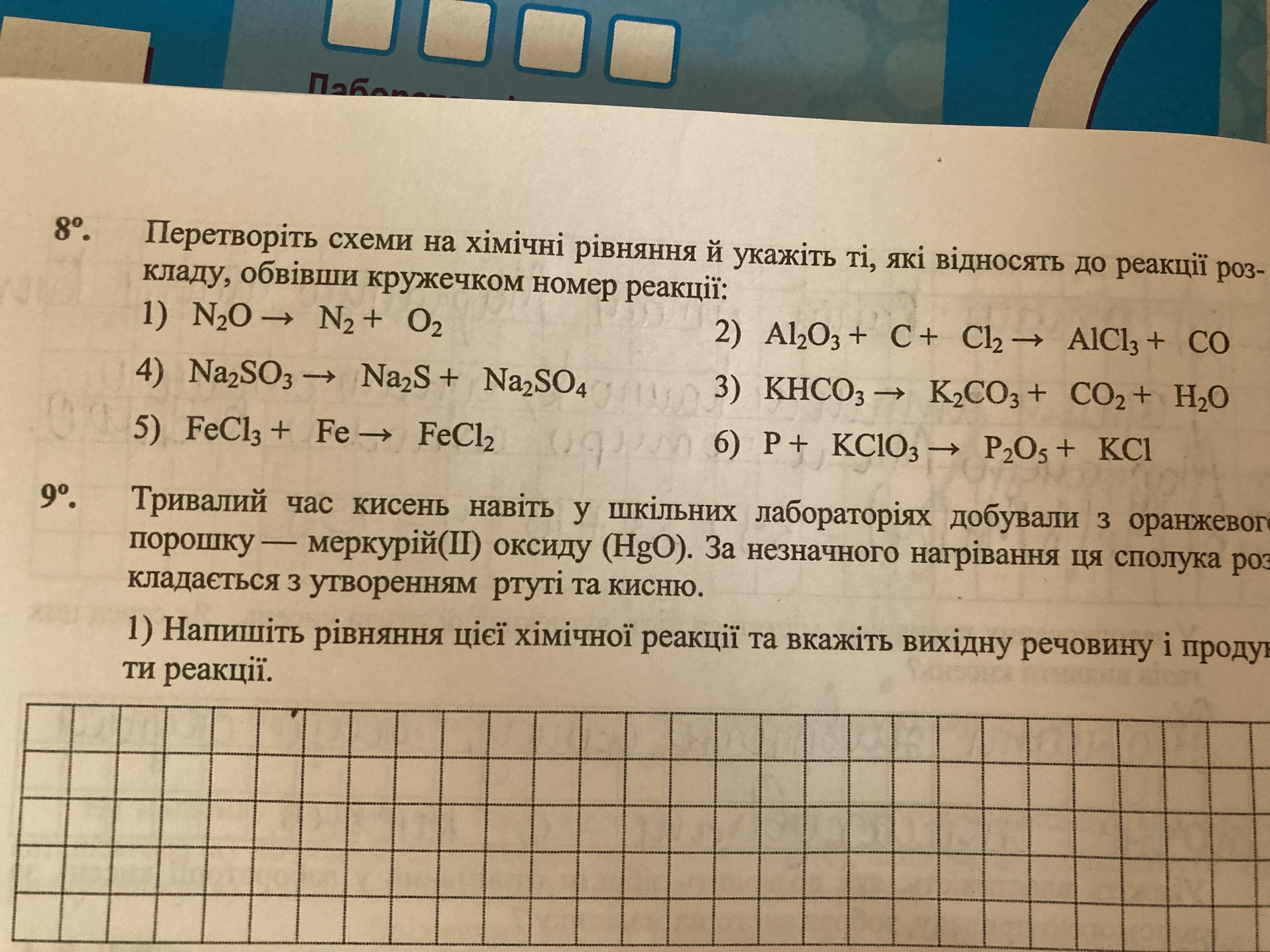 Перетворіть схеми на хімічні рівняння укажіть ті,які відносяться до реакції розкладу,всё на фото