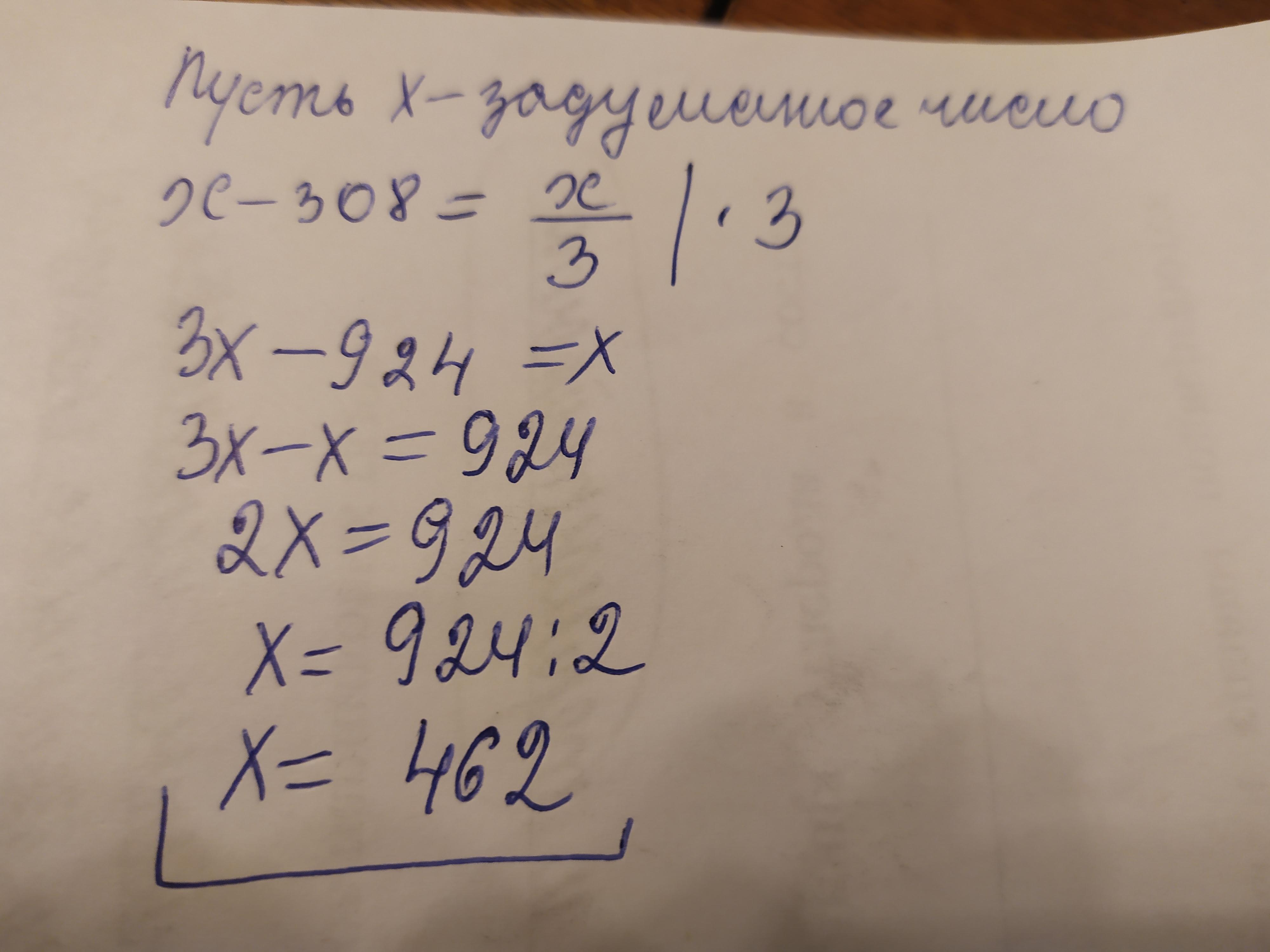 задумали число от этого числа отняли 308 и получили число которое в 3 раза меньше задуманного число найдите задуманное число