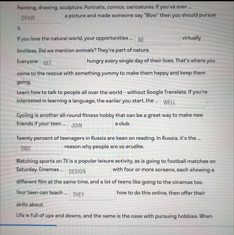 прочитайте приведённый ниже текст. преобразуйте слова, напечатанные заглавными буквами так, чтобы они грамматически соответствовали содержанию текста.