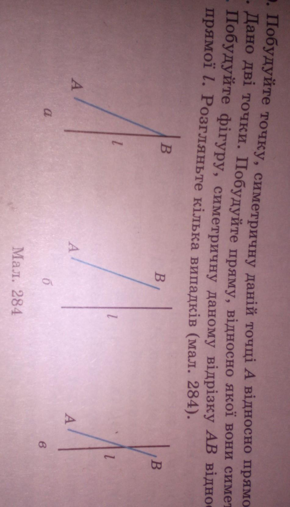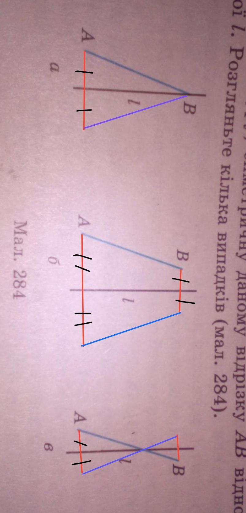 Побудуйте фігуру, семитричну даному відрізку АВ відносно даної прямої l