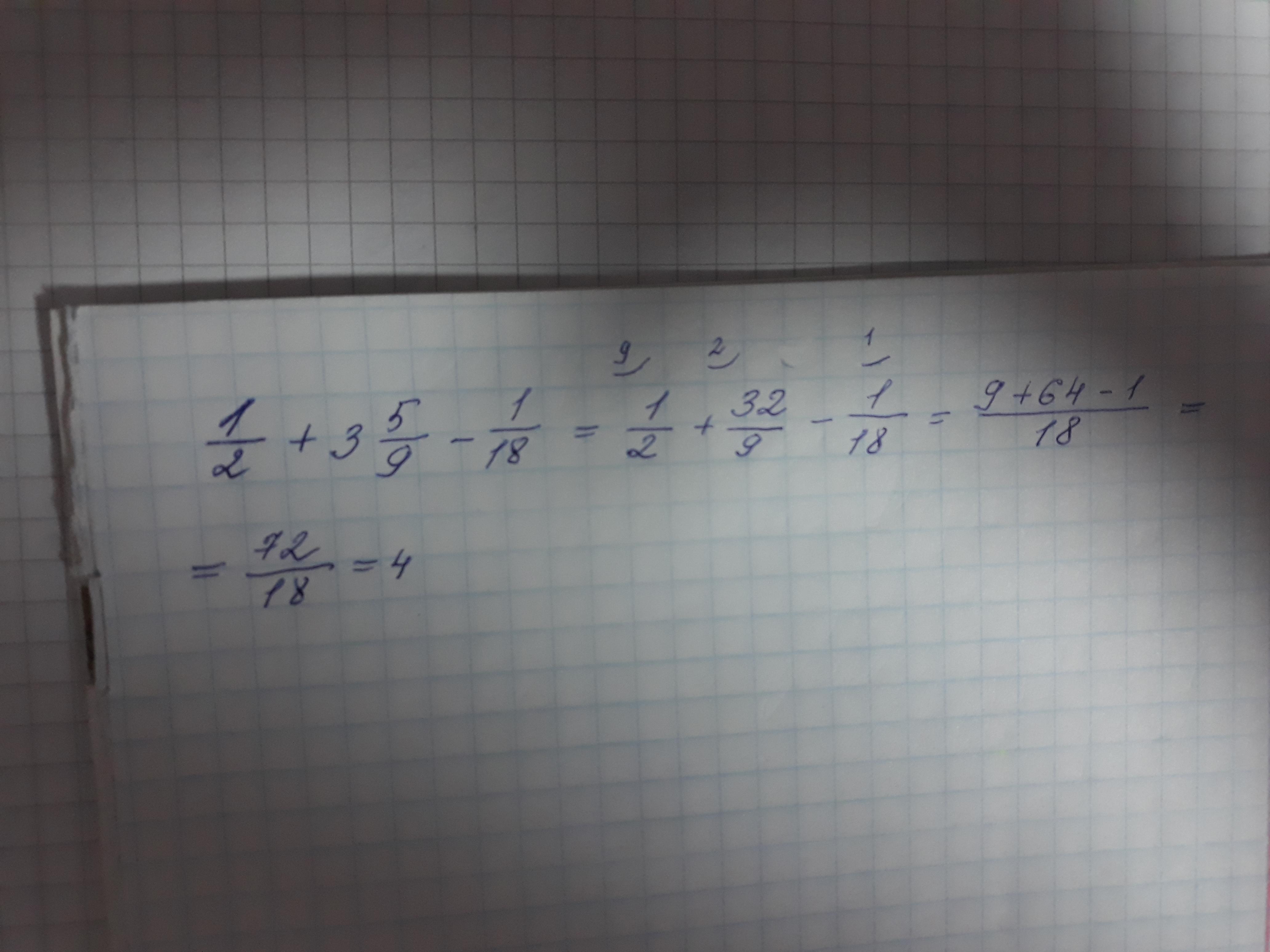Найдите значение выражения дробь, числитель — 1, знаменатель — 2 плюс 3 дробь, числитель — 5, знаменатель — 9 минус дробь, числитель — 1, знаменатель — 18 .ПОМОГИТЕ ПОЖАЛУЙСТА НАЙТИ ОТВЕТ!!!!!!!