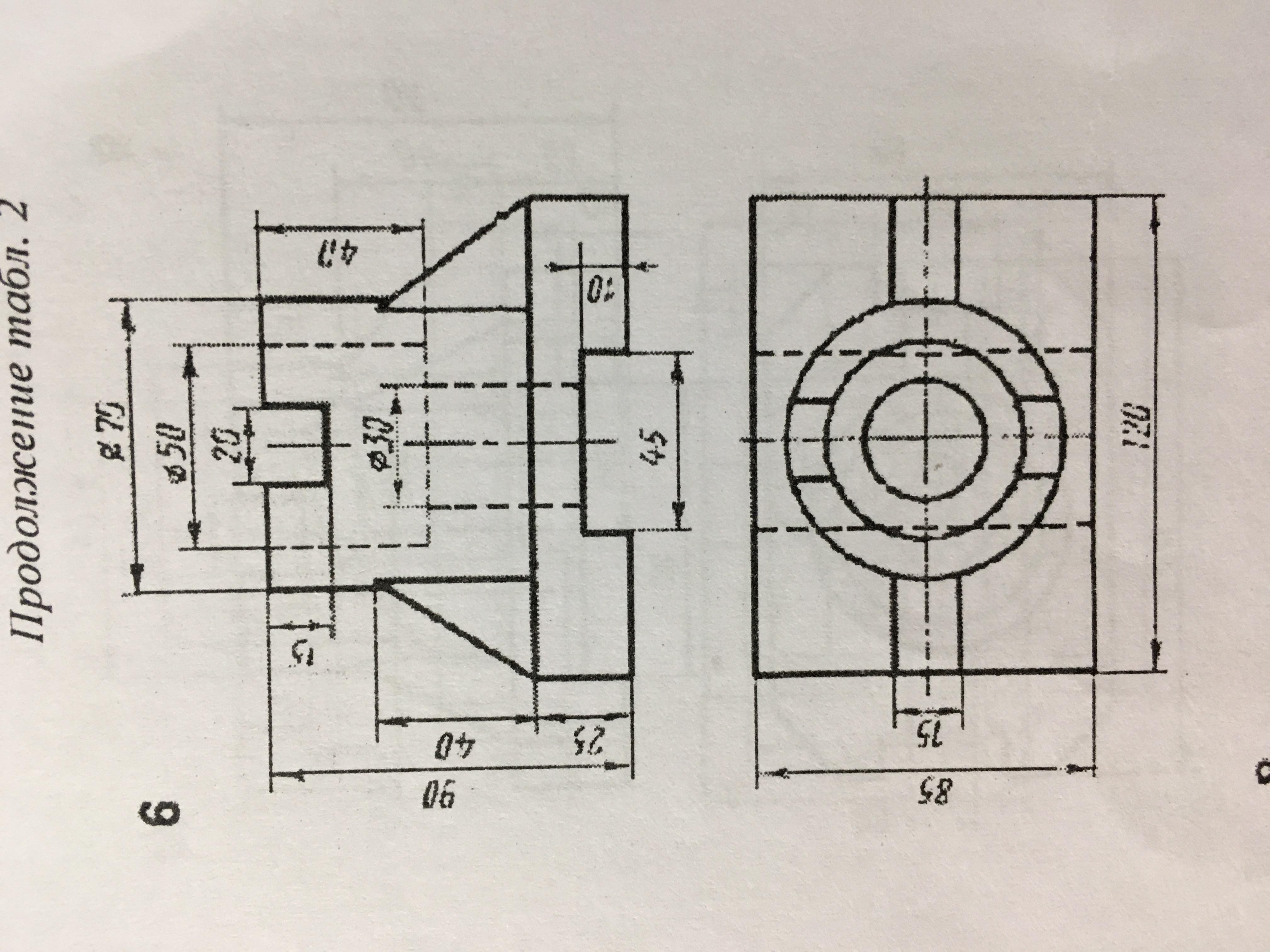 Помогите пожалуйста с начертательной геометрией, по 2 видам построить третий вид и выполнить полезные разрезы (фронтальный и профильный). Половина вида с половиной разреза.