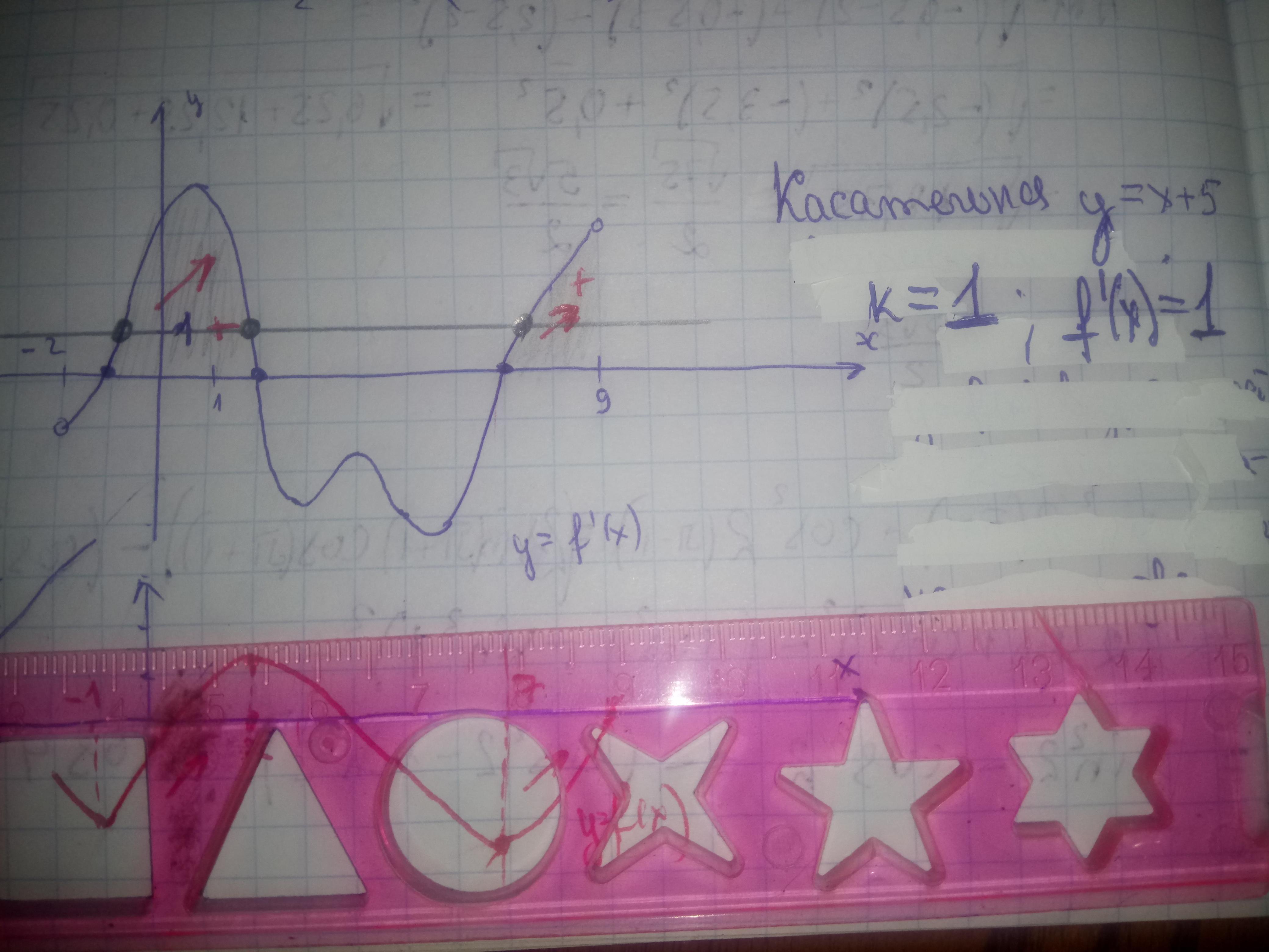 мы ищем точки в которых касательная параллельна или совпадает с прямой у=1*х+5