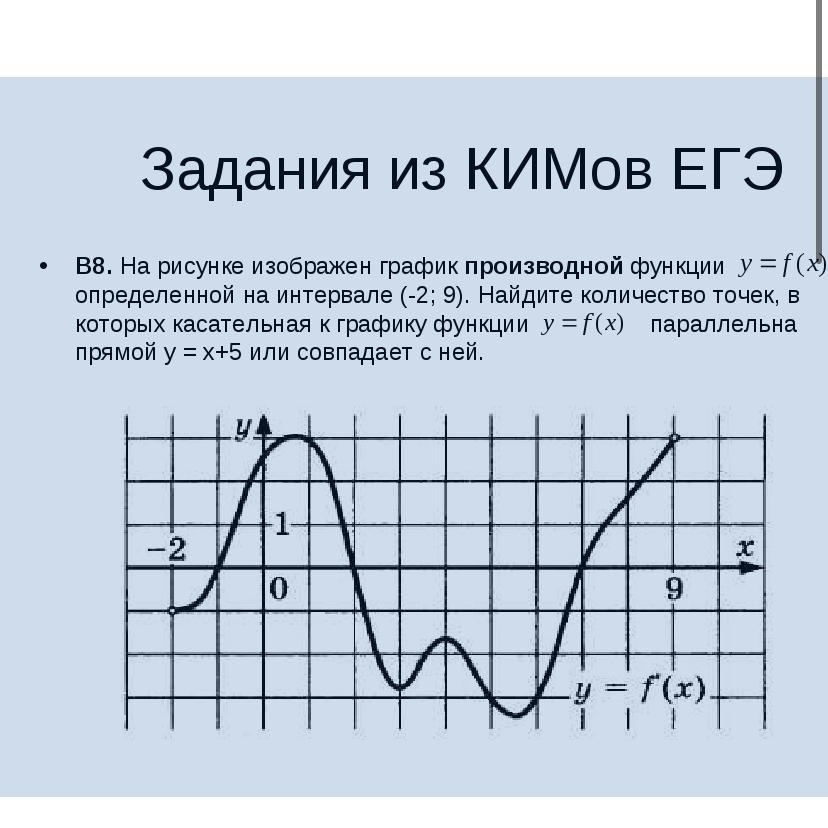 график производной дает нам значение тангенса угла наклона или , другими словами, значение коэффициента к в уравнении касательной у =кх+а