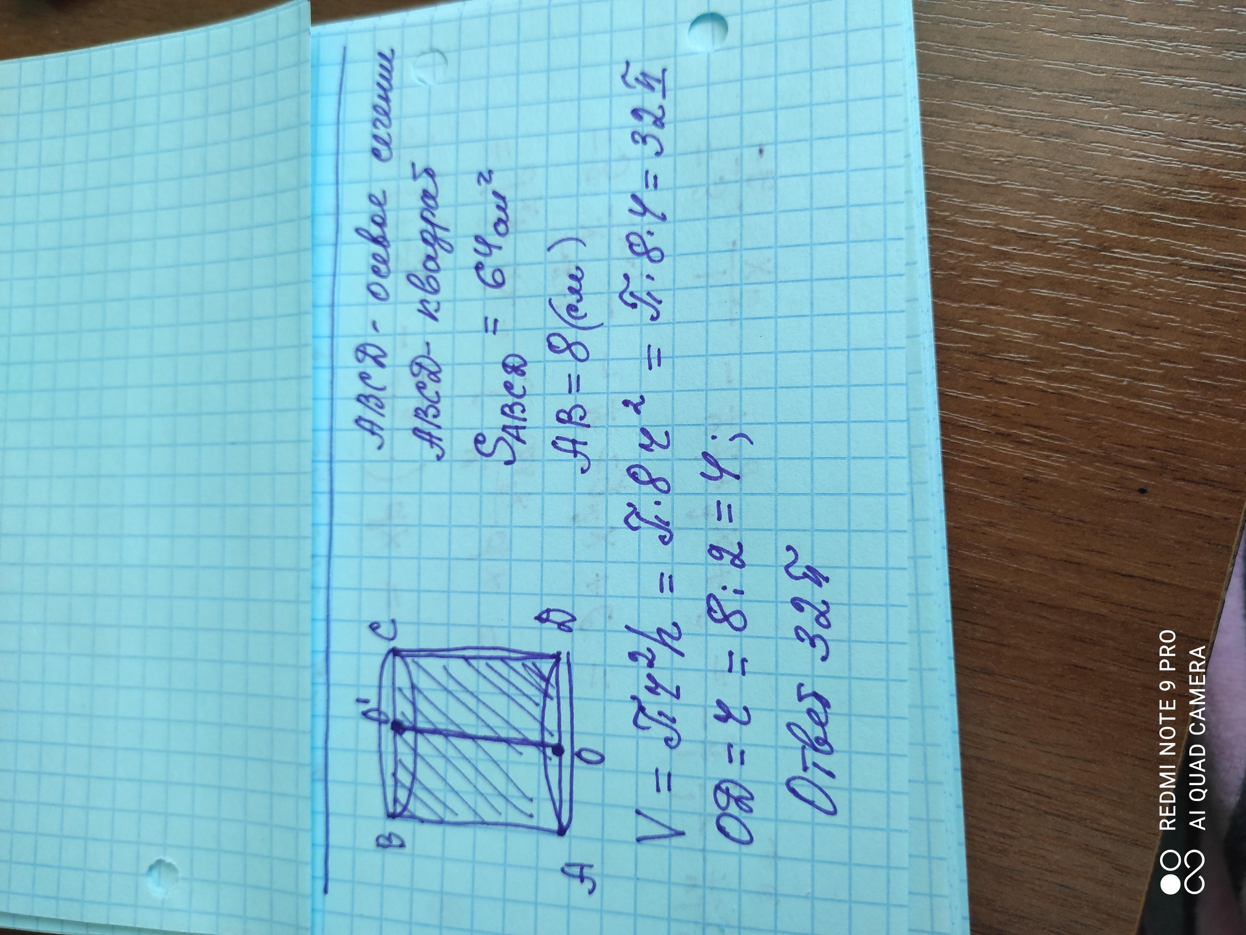 1 задание снизу там написано Осевое сечение циллиндра квадрата, его площадь 64см^2 Найти: V(объём)