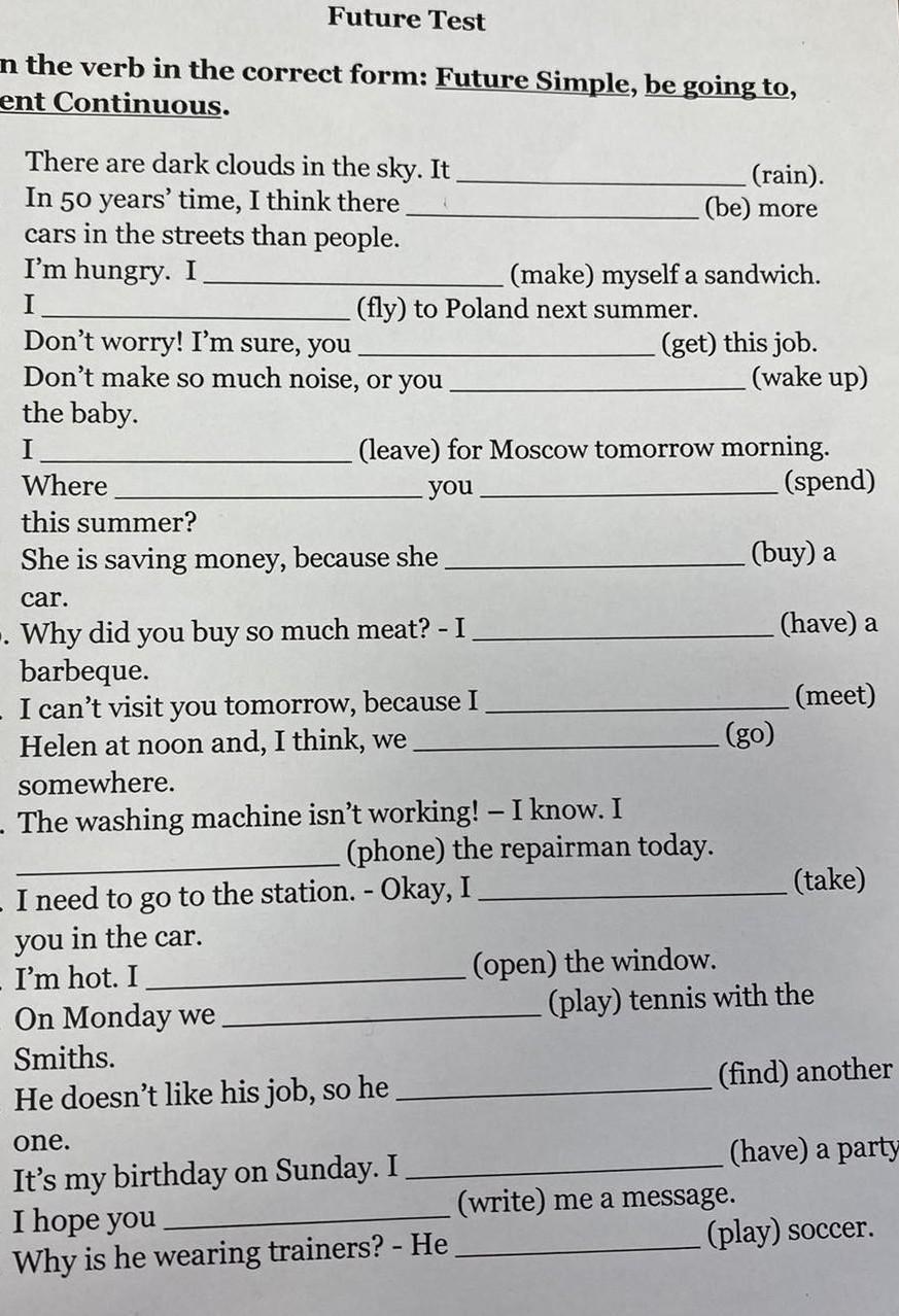 Здравствуйте решите срочно пожалуйста Fortune Test по английскому там нужно поставить will, present simple или be going to!!!
