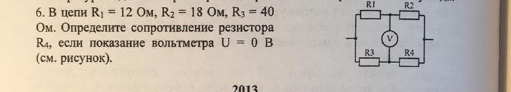 R4, если показание вольтметра U = ОВ