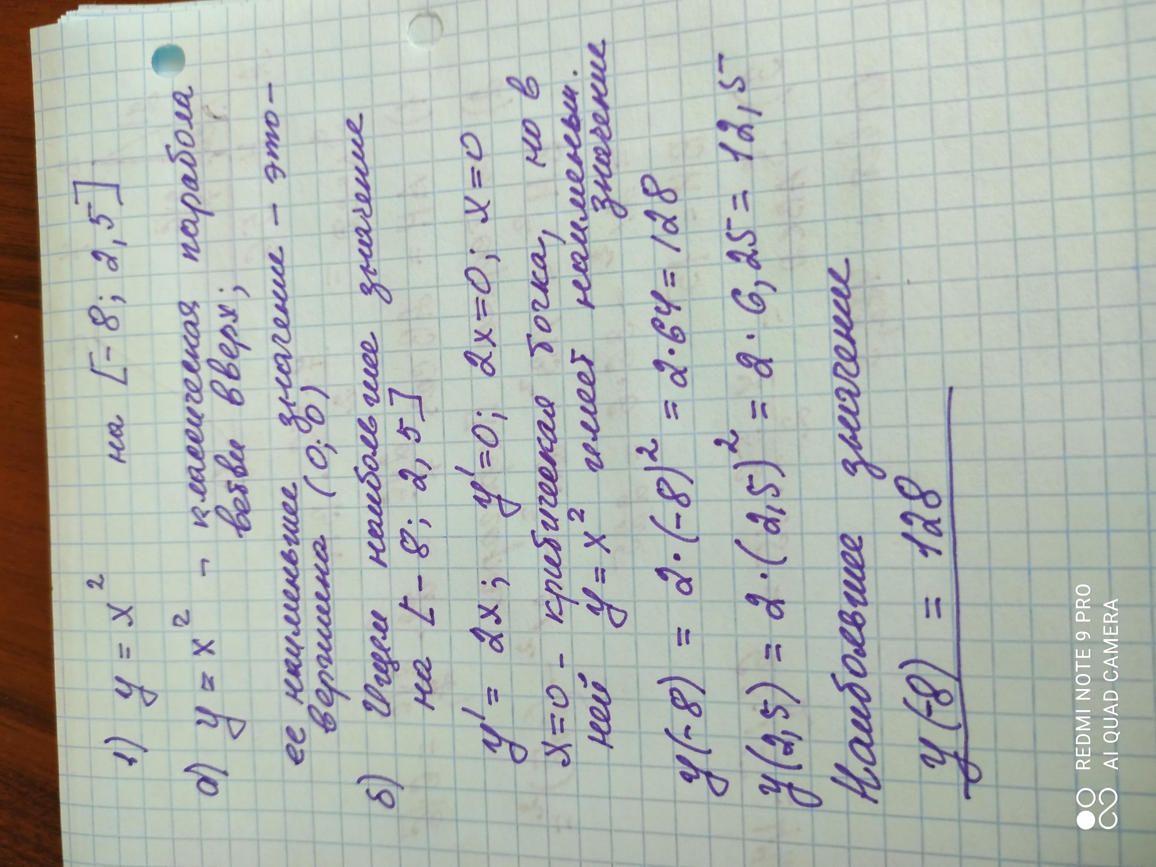 Найди наибольшее значение функции у=х^2 на отрезке [-8; 2,5].