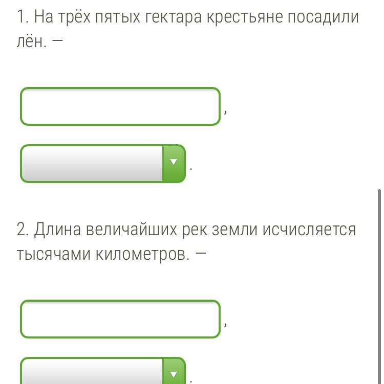 1. На трёх пятых гектара крестьяне посадили лён. —