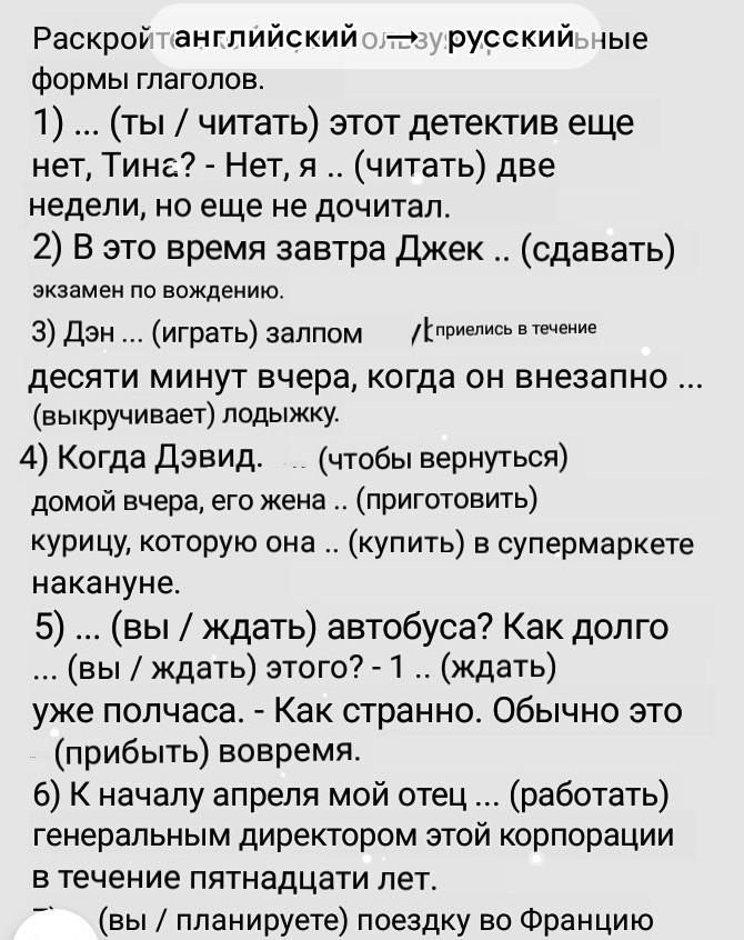 1) … (you / to read) that detective story yet, Tina? – No, I … (to read) it for two weeks, but haven’t finished yet.