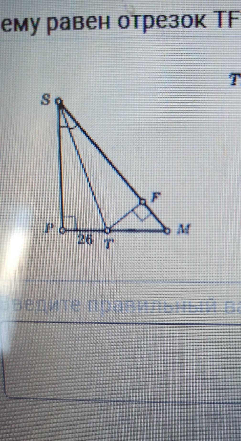 треугольник pst и tsf равны по стороне st и прилежащим углам, pt=tf=26