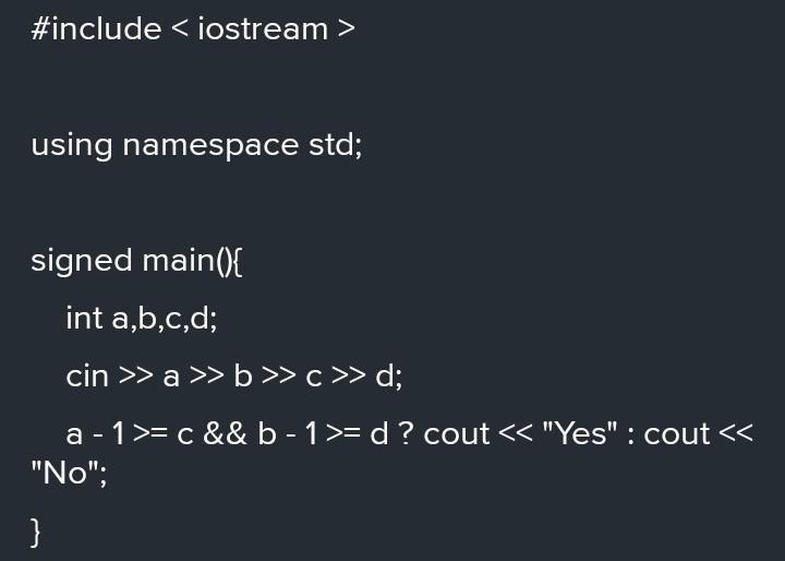 Определить, войдет ли в конверт с внутренними размерами a и b мм прямоугольная открытка размером с и d мм. Для размещения открытки в конверте необходим зазор в 1 мм с каждой стороны.