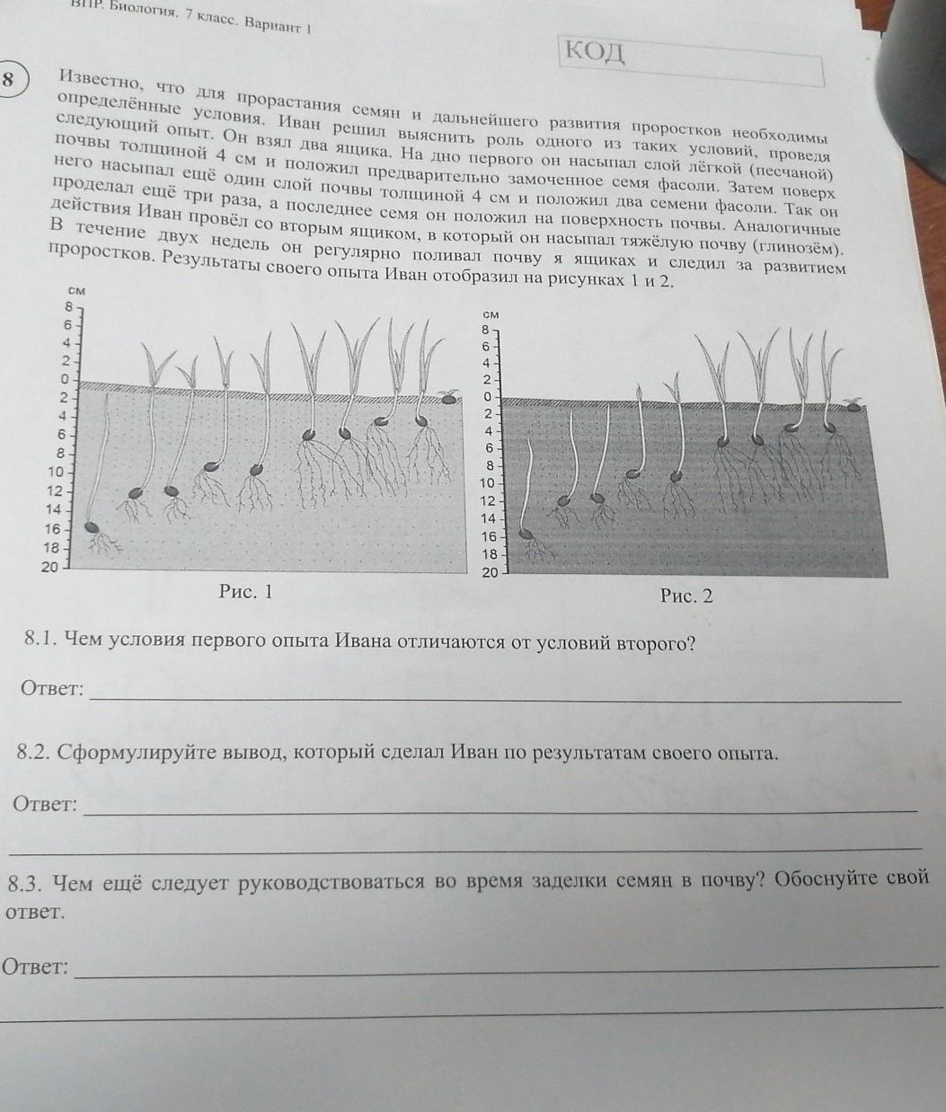 2)в песчаной почве семечку легче прорасти,так как она менее плотная.семечко,посаженное на глубину 16 см не прорастет в обоих случаях.оптимальная глубина посадки семечка: 4-2 см. семечко на поверхности не прорастает в обоих случаях.