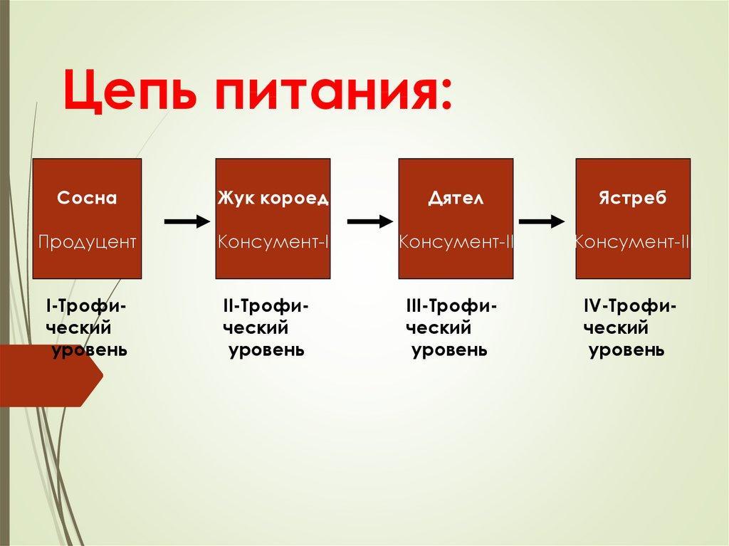 4. Составьте возможные схемы пищевых цепей в сообществе (не менее четырех). Укажите, какие организмы в составленных пищевых цепочках являются продуцентами, консументами и редуцентами; Дайте определение этих понятий.