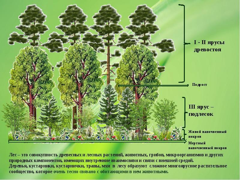 3. Нарисуешь рисунок, как ниже. Сосны занимают 1-2 ярус, потому что высокие. Изобрази их как можно выше. Ярус 3 подлесок, это в основном маленькие и молодые сосенки, бывают - редкие ели.