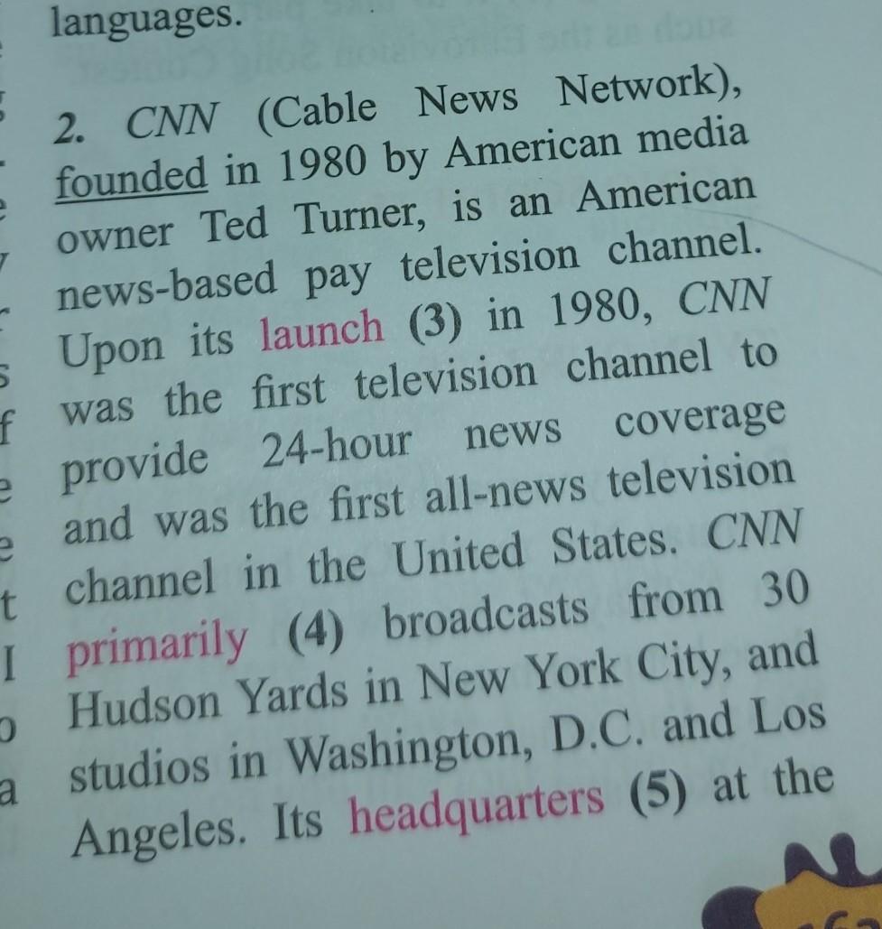 2. CNN (сеть кабельных новостей), основанная в 1980 году американским владельцем СМИ Тедом Тернером, является американским новостным платным телеканалом. С момента своего запуска в 1980 году CNN был первым телеканалом, который обеспечивал круглосуточное вещание, и первым телеканалом, полностью транслирующим новости в США. CNN в основном вещает с 30 Hudson Yards в Нью-Йорке и из студий в Вашингтоне, округ Колумбия, и в Лос-Анджелесе.