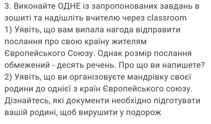 Моя країна - це Україна. Вона розташована в Східній та Центральній Європі. Площа становить 603 548 км², населення складає 41 500 000 чоловік. Межує з Республікою Білорусь, Польщею, Словаччиною, Угорщиною, Румунією, Республікою Молдова, Російською Федерацією. Країна омивається Чорним та Азовським морями. Україна - унітарна держава. Вона складається з 24 областей та Автономної Республіки Крим. На чолі держави стоїть Президент. Столиця України - древнє місто Київ. Україна - промислово-аграрна держава.