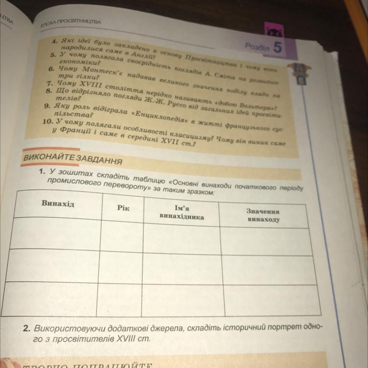 у зошитах складіть таблицю «Основні винаходи початкового періоду промислового перевороту» за таким зразком: