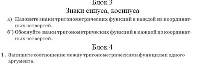 Т.к. в 1 четверти x > 0; y > 0 => sin > 0; cos > 0; tg > 0; ctg > 0;