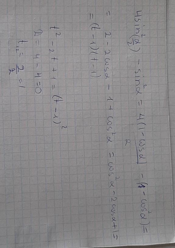 Не понимаю, куда сократилась четвёрка (у меня получается, что она сокращается до двойки), и куда пропадает квадрат, после использования тригонометрического тождества