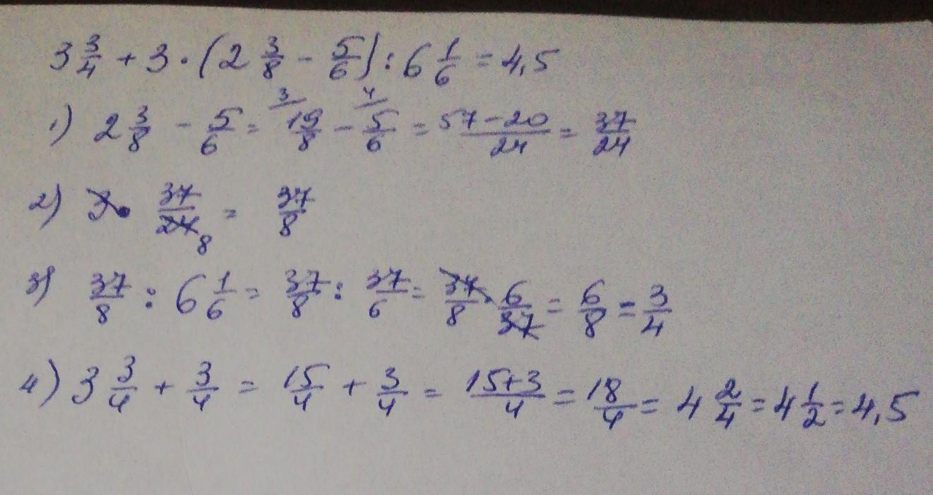 3) 37/8 : 6 1/6 = 37/8 : 37/6 = 37/8 *6/37= 3/4;