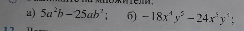 а) 5a²b-25ab² => выносим за скобки общий множитель 5ab; получаем: