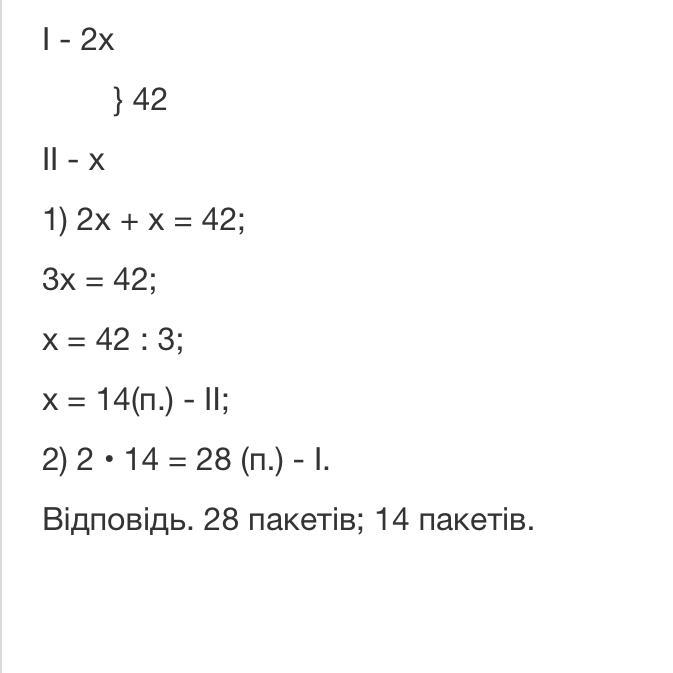 му пакетів удвічі більше, ніж у другому. По скільки пакеті
