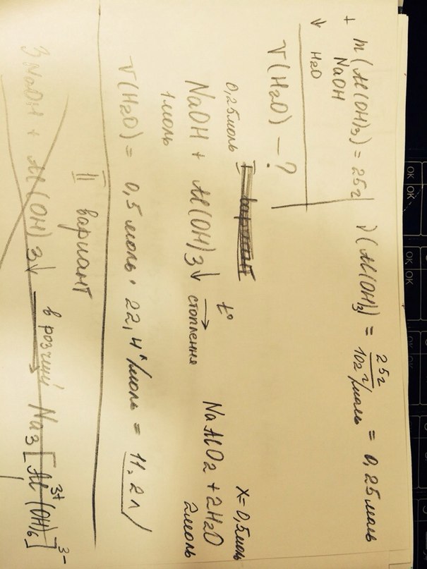 обчисліть об'єм води який утворився при взаємодія гідроксиду натрію з гидрооксидом алюминию з масою 25 г
