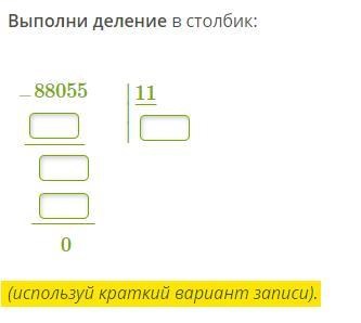 Ответ : 88055 : 11 = 8005 столбиком решено на фото