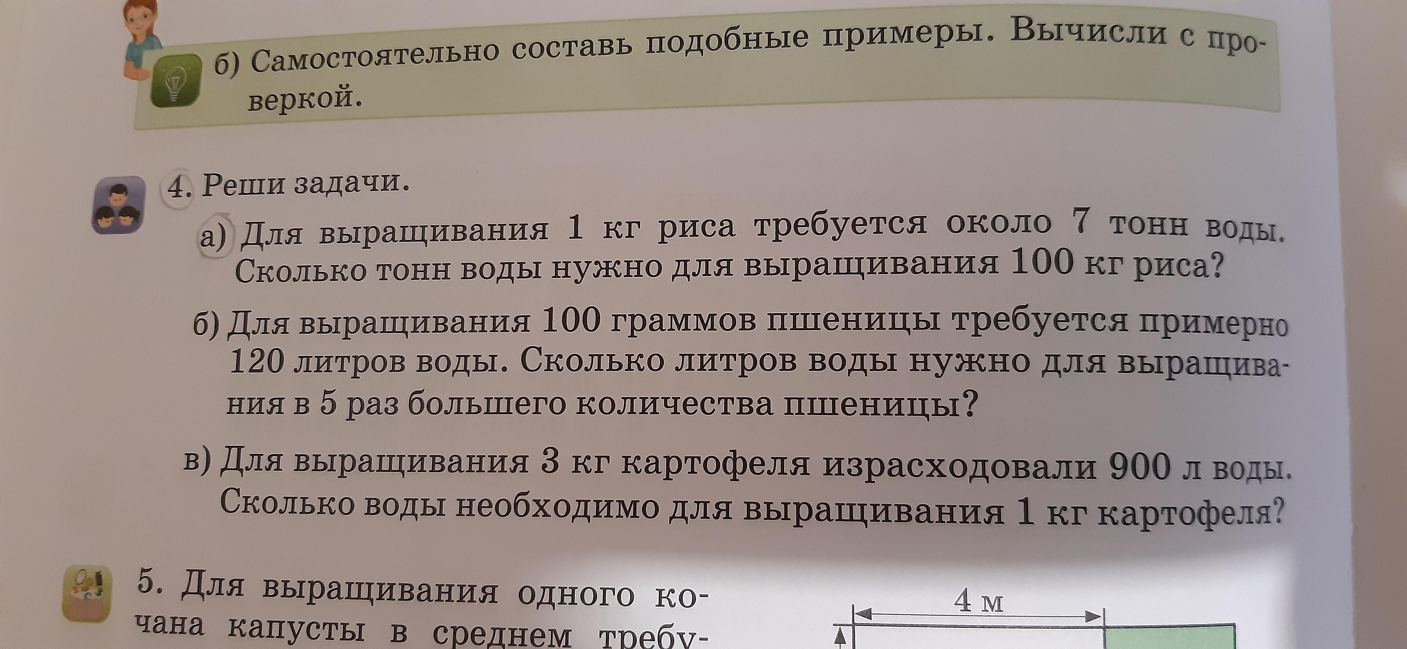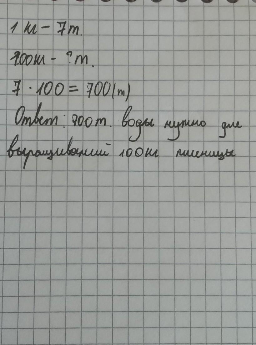 Помогите пожалуйста сделать задачу А)Для выращивания 1 кг риса требуется около 7 тонн воды.Сколько тонн воды нужно для выращивания 100кг риса?