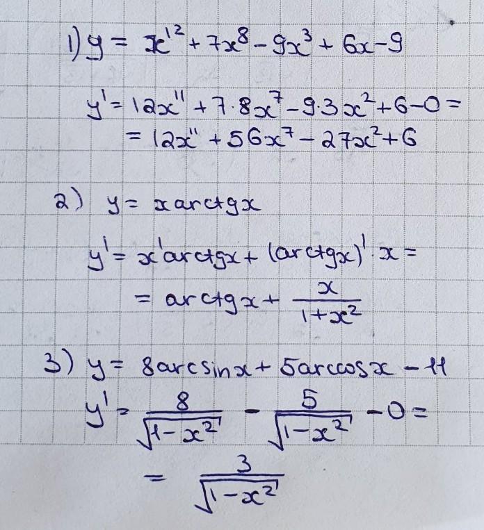 ДАЮ 30 БАЛЛОВ Помогите найти производные следующих функций