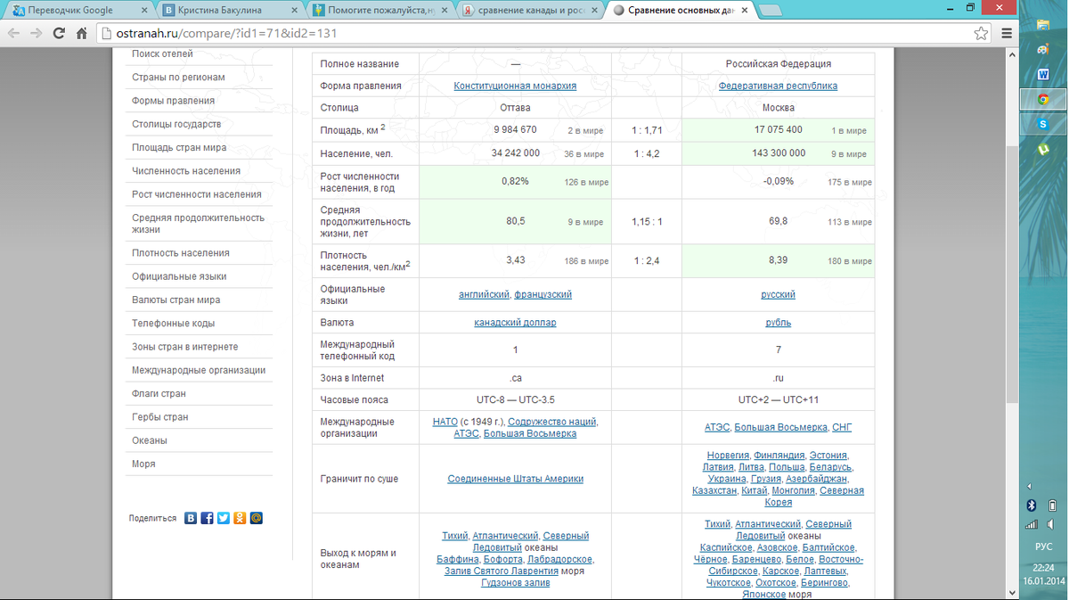 I want to speak about Russia and Canada. The Russian capital is Moscow, the capital of Canada is Ottawa. Russia's population is much larger than Canada. Russia has 143 billion and Canada has 33 billion. These countries are located on different continents. Russia is in Eurasia. Canada is in North America. Canada is bordered by three oceans. This is the Pacific Ocean, Atlantic, Arctic. Russia is bordered by the same oceans.Well, in these countries, people speak different languages. In Russia is Russian and in Canada is English.