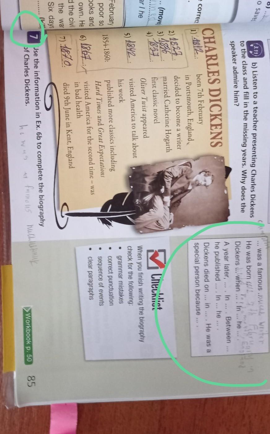 Надо 7 задание к белой табличке написать биографию на английском на уровень 5 класса с помощью мини текста CHARLES DICKENS пожалуйста помогите даю 30 баллов