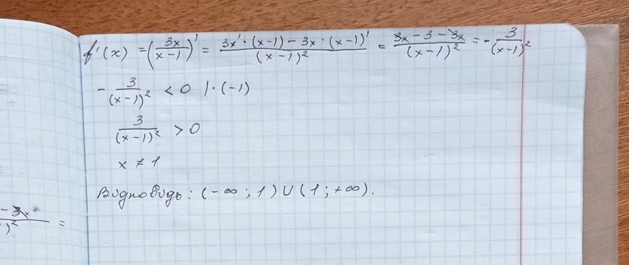 Допоможіть будь-ласка дуже прошу Плиззз плиззз плиззз. Розв'яжіть нерівність f'(х)<0, якщо f(х)=3х/х-1