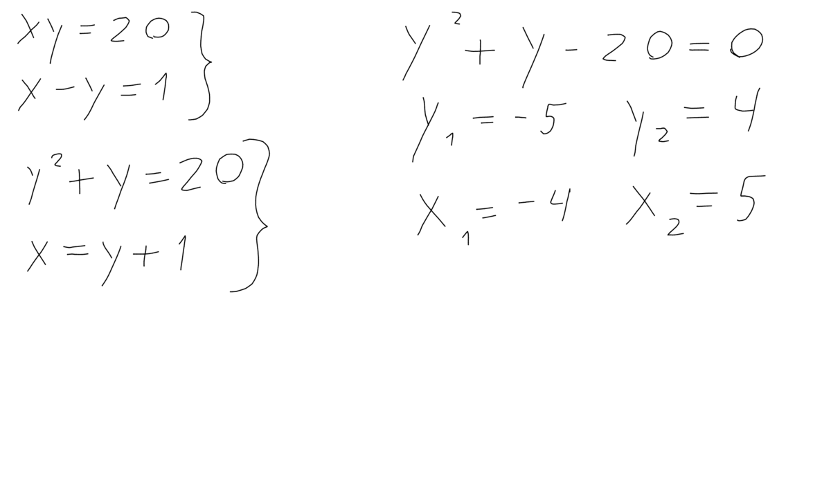 Произведение двух чисел равно 20,а изх разность равна 1.Найдите эти числа.